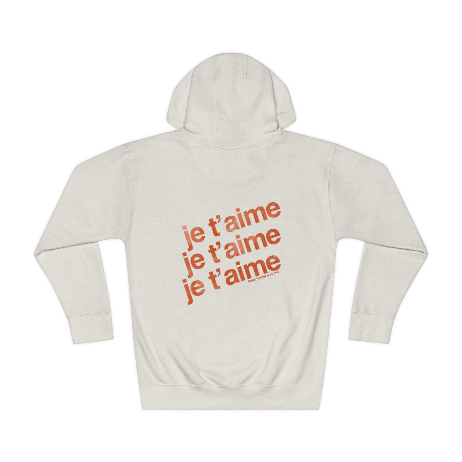 Warm, stylish, and perfect for those colder days - wear your heart on your hoodie with our new Je'Taime Hoodie.