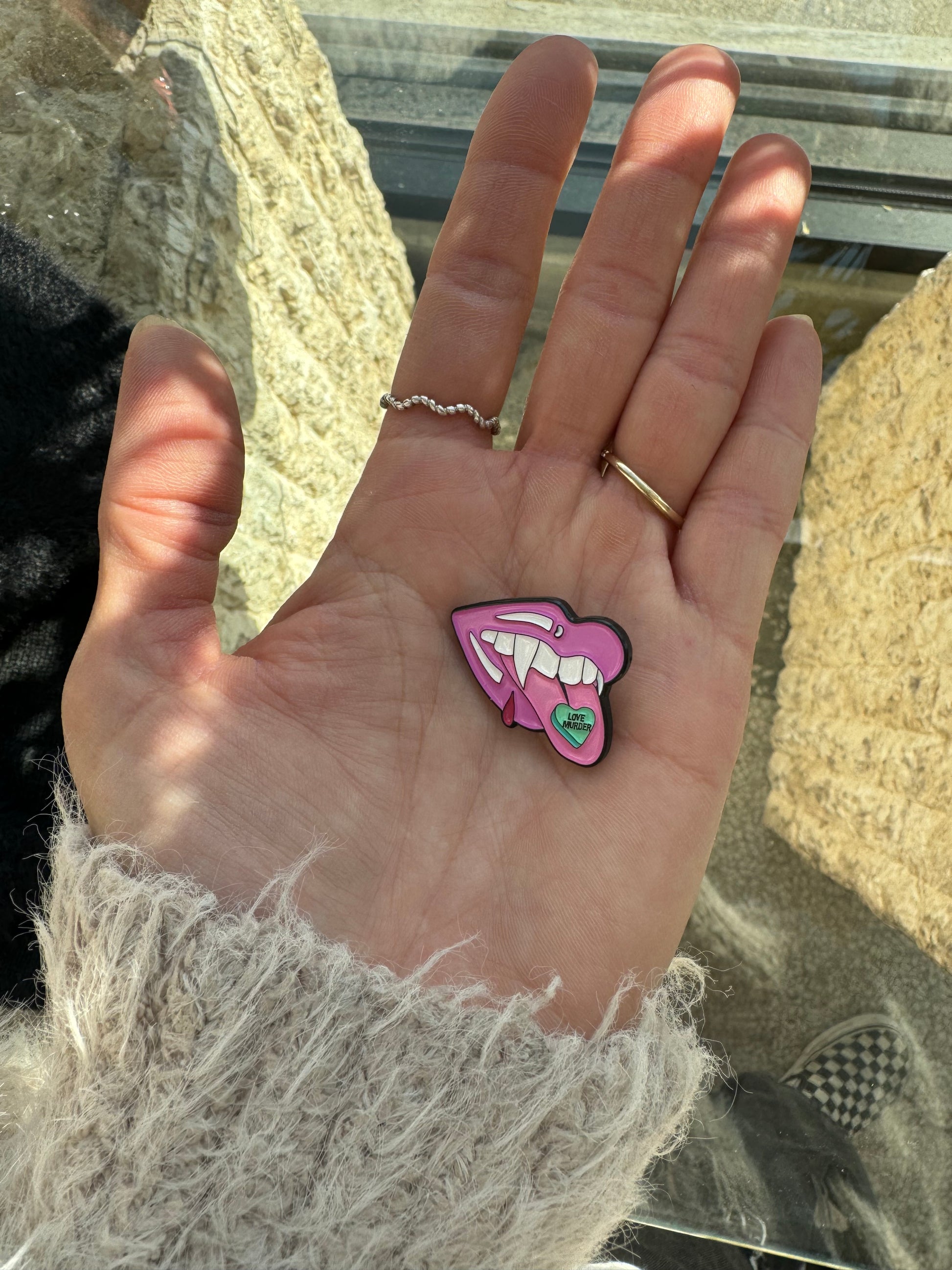 Sassy little Love Murder Pill enamel pin! This product is already produced and ready to ship from Los Angeles.