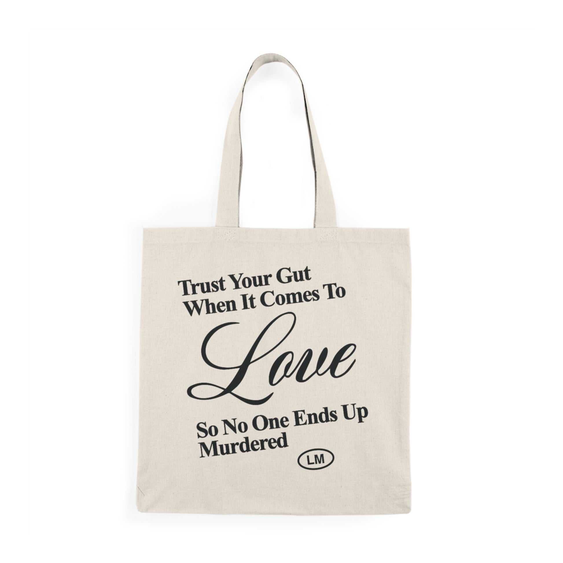A 100% cotton tote bag is the champion of durability, sustainability, and style. You can show off your love for LOVE MURDER PODCAST by toting around (get it?) this beautiful TRUST YOUR GUT famous slogan.